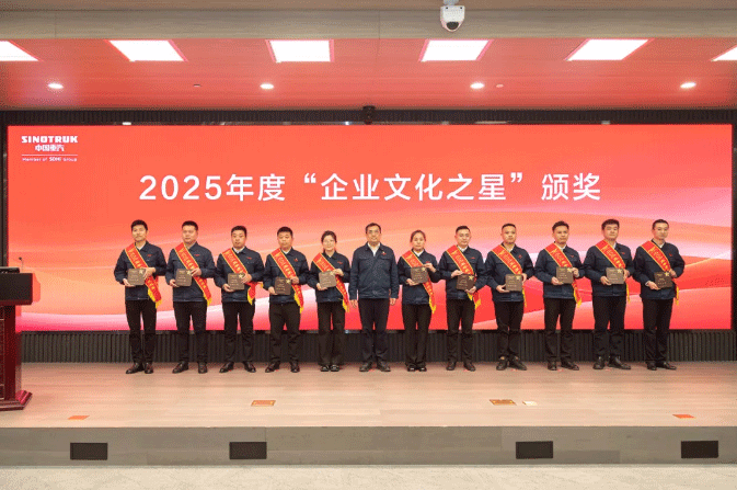 為深入推進集團1137企業文化體係落地落實,3月12日,中國重汽集團召開2026年企業文化工作會議,表彰先進典型,交流基層經驗,對2026年企業文化落地工作進行部署安排。集團公司黨委副書記、工會主席蔣朋朋,黨委委員、紀委書記張明皓出席會議並為企業文化之星代表頒獎。